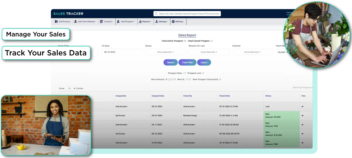 Our AI-powered sales management system is designed to simplify and optimise sales across industries. From lead management and sales performance tracking to providing real-time insights into the sales pipeline, it gives a better understanding of your business, helps in closing deals faster, and drives constant revenue. The system fits your needs, whether you have a small business or a large one. Learn more about our features or book a demo to experience it yourself.